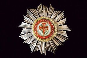 dimensioni 7.2 x 7.2 cm. XIX Secolo Placca di gran croce, in argento, con motto al centro 'FUR BADENS EHRE'. Il [..]