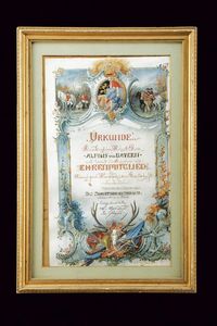 dimensioni 36.2 x 53.8 cm. 1893 Documento da membro d'onore della Reale Privilegiata Società dei Tiratori per [..]