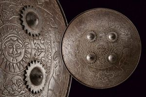 diametro 38.5 cm. XIX Secolo Di forma circolare e leggermente convesso, dotato di quattro borchie convesse con [..]