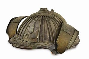 altezza 14 cm. Periodo Edo (1603-1867) Hachi con 28 piastre Nerikawa (cuoio bollito). Hachimanza alla sommitą. [..]