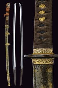 lunghezza 94.5 cm. 1940 circa Lama con nagasa di 66,7 cm, hamon visibile, hada scarsamente leggibile. Nakago mu-mei [..]