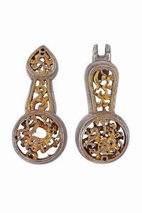 lunghezza 8 - 8 cm. In ferro traforato, parzialmente dorati e riccamente intagliati.