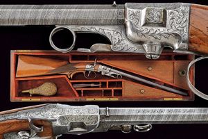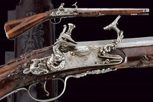 lunghezza 115.5 cm. Canna rigata, a due ordini, prima ottagonale, con cornice alla base, decorazioni in filigrana [..]