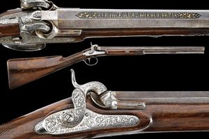 lunghezza 118 cm. Canna ottagonale incisa alla base e con firma 'IGNAZ BRUKNAN IN KORNEUBURG', mirino in ottone [..]