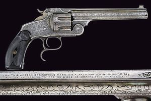USA, lunghezza 21,7 cm. 1883 circa Third Model Large Frame. Canna corta rigata, con mirino, senza bindella dorsale, [..]