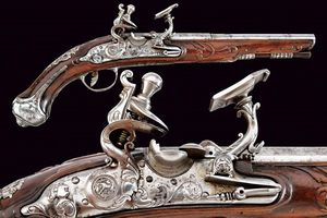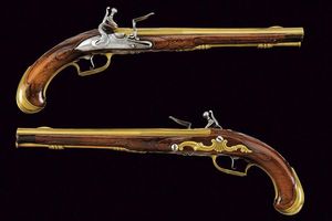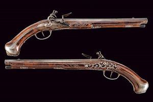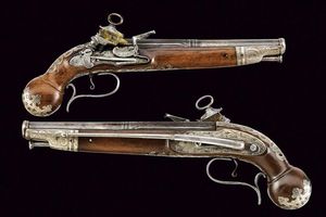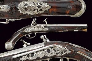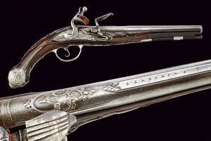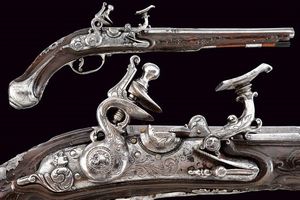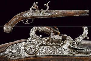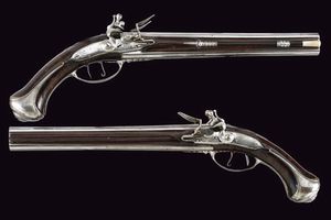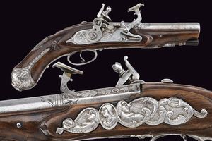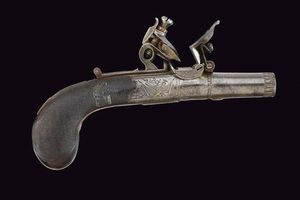 lunghezza 46.5 cm. Lunga canna liscia, ottagonale, con cornice alla culatta, decorata con sottili nervature su [..]