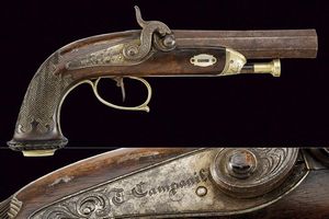 lunghezza 25 cm. Canna ottagonale, liscia, firmata 'Napoli' fra volute, la base incisa a cornici, cal. 16 mm. [..]