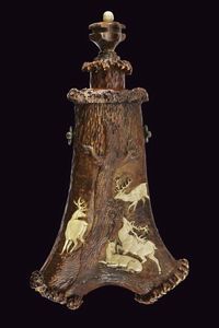 altezza 20 cm. Corpo realizzato da un palco di cervo. Finemente intagliato sul lato anteriore con cervi in stiacciato [..]
