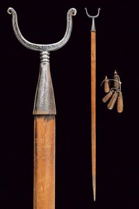 altezza fork 137 cm. In ferro, a forma di 'U' ornata con nodi alla base e munita di gorbia troncoconica, fusto [..]