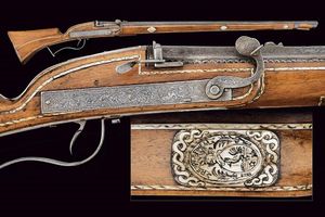 lunghezza 118 cm. Canna ottagonale incisa alla base e con firma 'IGNAZ BRUKNAN IN KORNEUBURG', mirino in ottone [..]