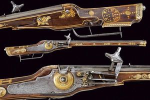 lunghezza 115 cm. Pesante canna rigata ottagonale, con culatta recante la data '1637' e con lievi resti di una [..]