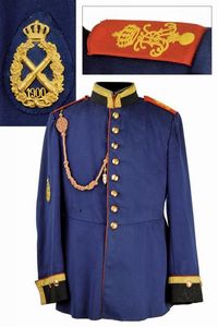 altezza 82 cm. inizio del XX Sec. In bel panno blu con colletto e polsini in color nero e con gallone dorato. [..]