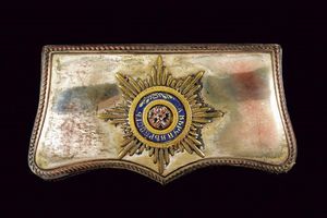 dimensioni 14.5 x 8 cm. Fine del XIX Secolo Corpo in cuoio (danni e mancanze), con coperchio argentato dotato [..]