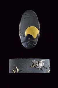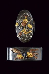 lunghezza 3,3 - 3,7 cm. Periodo Edo (1603-1867) Elegante set in shakudo. I due elementi lavorati en suite con [..]