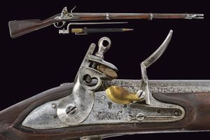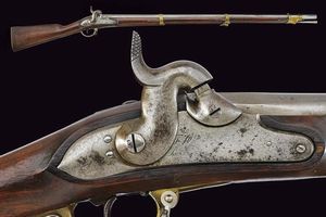 USA, lunghezza 146,5 cm. 1858 Canna tonda con resti di rigatura, dotata di dente d'innesto per baionetta, con [..]