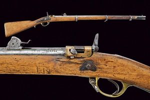 USA, lunghezza 98,5 cm. 1860 - 1865 Canna tonda rigata, basculante, dotata di mirino e di alzo a foglietta abbattibile, [..]