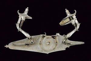 lunghezza 115.5 cm. Canna rigata, a due ordini, prima ottagonale, con cornice alla base, decorazioni in filigrana [..]