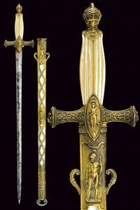 lunghezza 96.5 cm. inizio del XX Sec. Lama dritta a due fili, costolata in mezzeria, incisa peer oltre matà su [..]