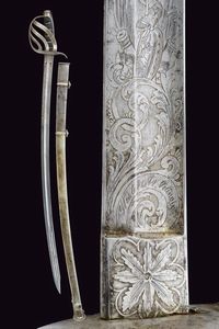 lunghezza 98.5 cm. Terzo quarto del XIX Secolo Lama curva a un filo e controfilo, nichelata, sgusciata, incisa [..]