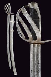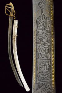 lunghezza 98 cm. Metà del XIX Secolo Lama curva un filo e controfilo, con ampio sguscio, incisa per metà a trofei [..]