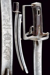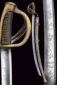 lunghezza 100.5 cm. 1791 Lama curva a un filo e controfilo con ampio sguscio centrale, recante su un lato stemma [..]
