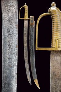 lunghezza 72,5 cm. Seconda metà del XVIII secolo Lama curva marcata 'GRENADIER' e con emblema a granata fiammeggiante, [..]
