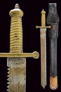 lunghezza 64 cm. Metà del XIX Secolo Larga lama dritta a un filo e corto controfilo, dorso a sega; tallone con [..]