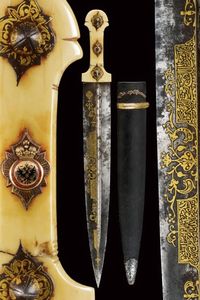 lunghezza 100 cm. Metà del XIX Secolo Lama dritta a un filo e controfilo, con duplice scanalatura. Fornimento [..]