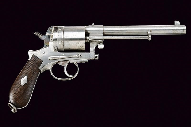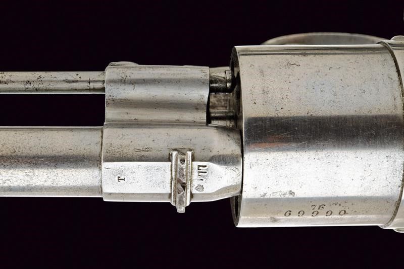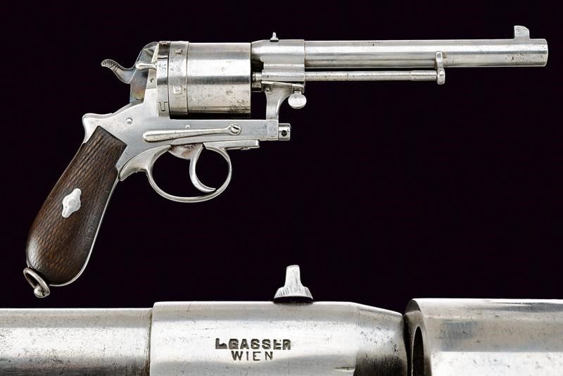 lunghezza 35.5 cm. Canna cilindrica rigata (rigatura visibile), dotata di mirino e tacca di mira, con punzone 'T' alla base e marcatura 'L.GASSER / WIEN', cal. 11 mm. Tamburo a sei colpi con matricola. Meccanica funzionante. Castello con marcatura '4 L U R 213.' (probabilmente numeri di reparto). Tamburo, castello ed estrattore con numero di matricola coevo '69xxx'. Impugnatura con guancette zigrinate in legno. Anello porta correggiolo.