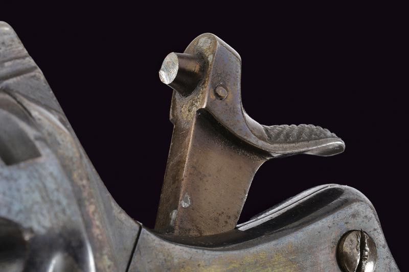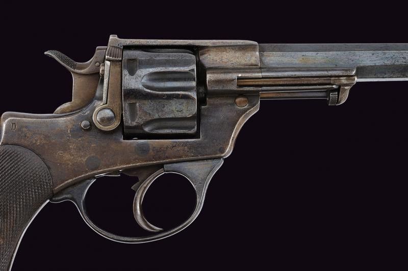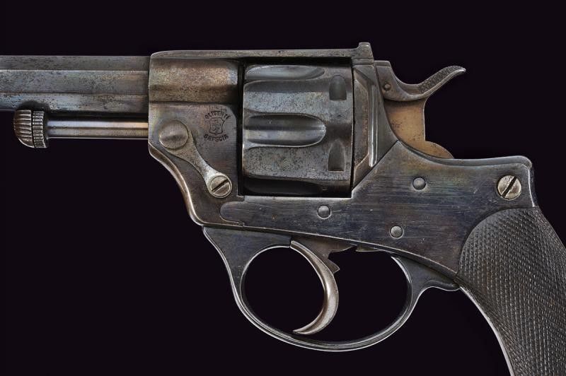 lunghezza 28,7 cm. Canna ottagonale rigata, cal. 10.4 mm. in volata. Anima pulita, rigatura visibile.Tamburo a sei colpi. Marcatura 'GLISENTI BRESCIA'. Meccanica funzionante, il percussore del cane troncato. Guancette in legno zigrinato. Anello porta correggiolo. Conserva resti della brunitura antica.