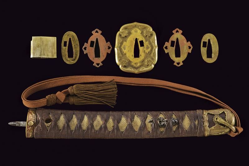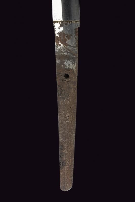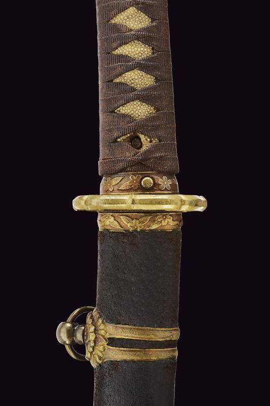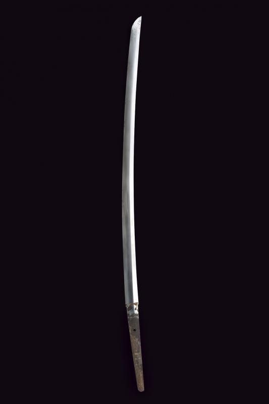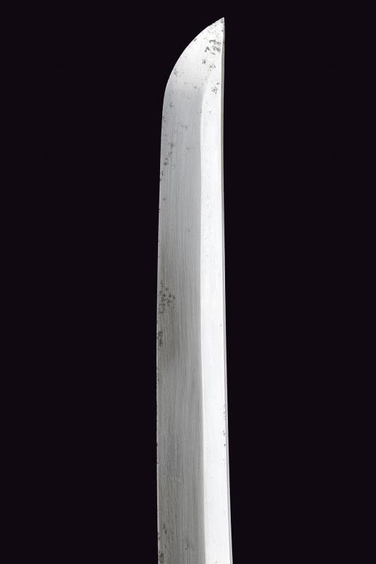 lunghezza 96.3 cm. Periodo Showa (1926-1989) Lama con nagasa di 65.6. Hamon: suguha, hada non visibile. Nakago mei: Showa 18 anno 10 mese - ottobre 1943 Kiyo Nao, un mekugi-ana. Habaki in ottone. Tipico koshirae shin-gunto con menuki a forma di drago.