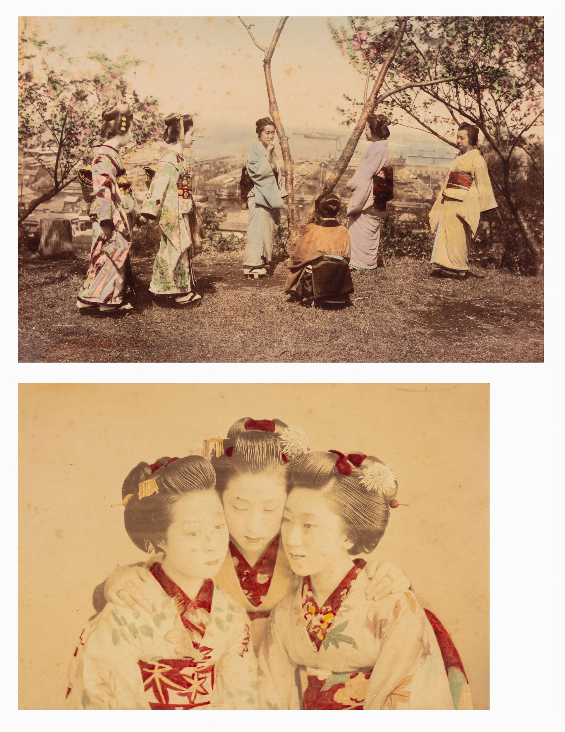 Due stampe all'albumina colorate a mano, cm 17 x 23,7 ; cm 18 x 27