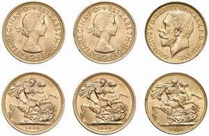 GRAN BRETAGNA. CINQUE RIPRODUZIONI DI MEZZE STERLINE ORO