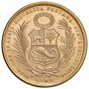 PERÙ. 100 SOLES 1964 LIMA Au gr. 46,82 KM 230; Fried. 79 FDC MS