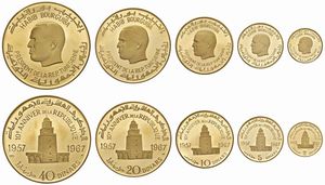 TUNISIA. REPUBBLICA (DAL 1957). SERIE COMPLETA DI CINQUE VALORI ORO 900 (40, 20, [..]