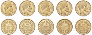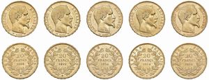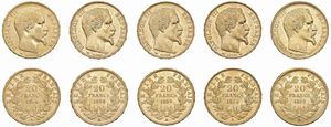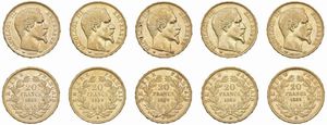 FRANCIA. NAPOLEONE III (1852-1870). CINQUE MONETE DA 20 FRANCHI