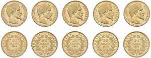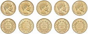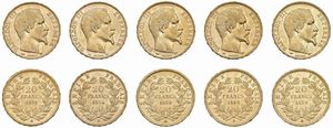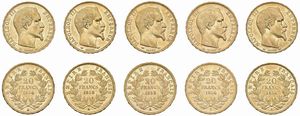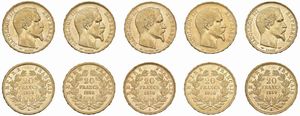 FRANCIA. NAPOLEONE III (1852-1870). CINQUE MONETE DA 20 FRANCHI