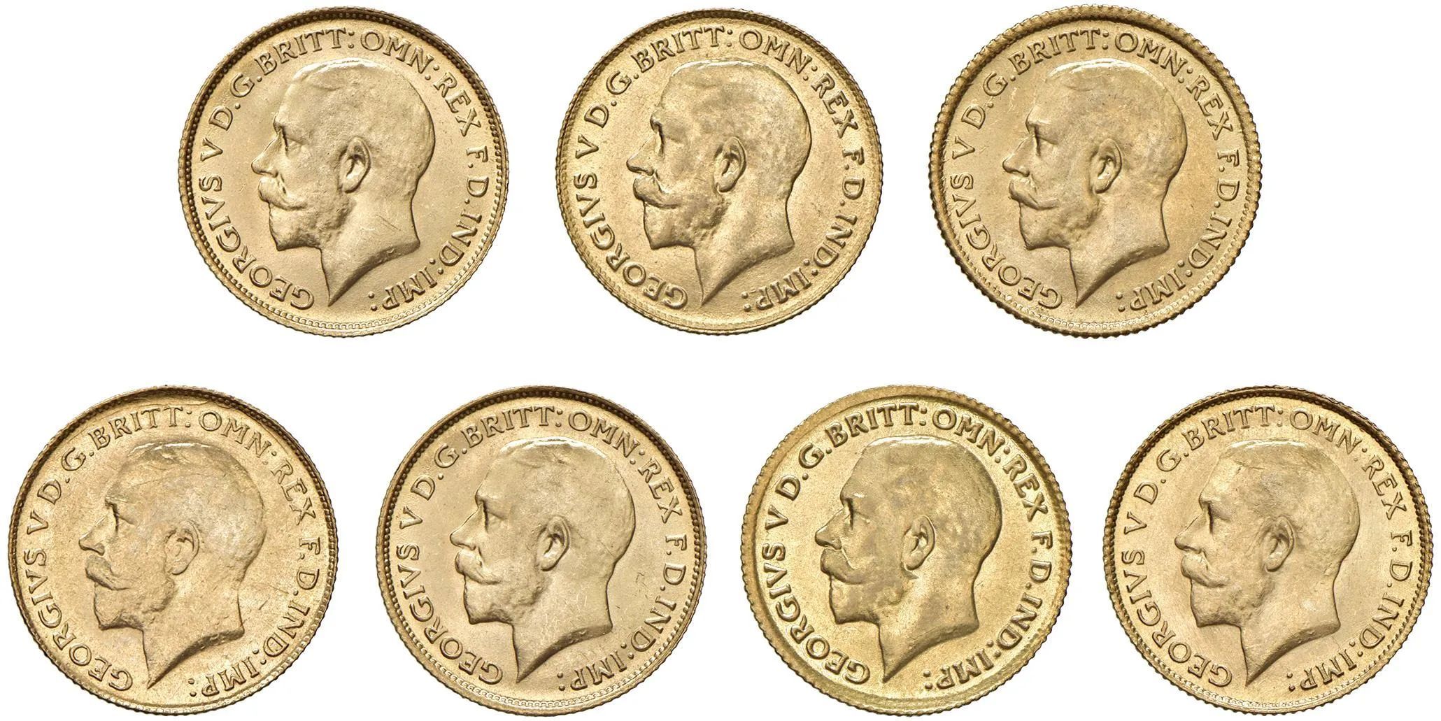 GRAN BRETAGNA. SETTE RIPRODUZIONI DI MEZZE STERLINE ORO
