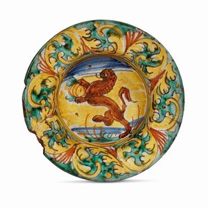 ACQUASANTIERA, DERUTA, INIZI SECOLO XVII in maiolica dipinta in policromia di forma architettonica. All’interno [..]