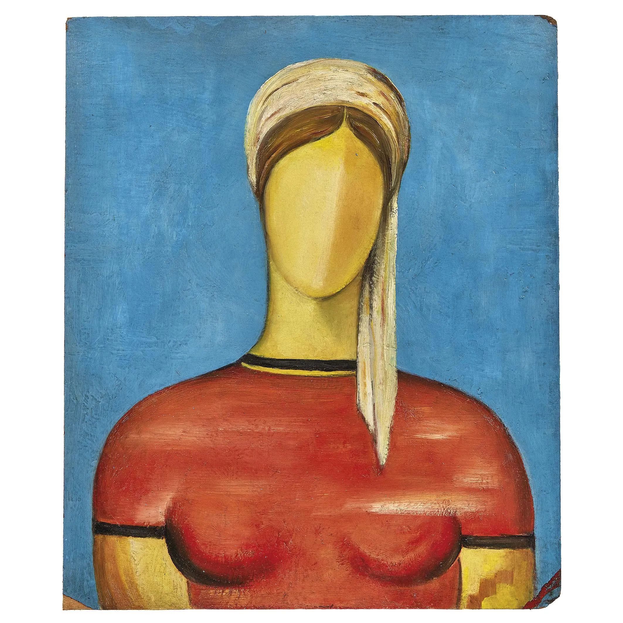 KONSTANTIN ROZHDESTVENSKY (Russia 1906 - 1999) Figura 1930 olio su cartone cm 41x33,5 al retro firmato e datato al retro timbro 'Opera del pittore Konstantin Rozhdestvensky'