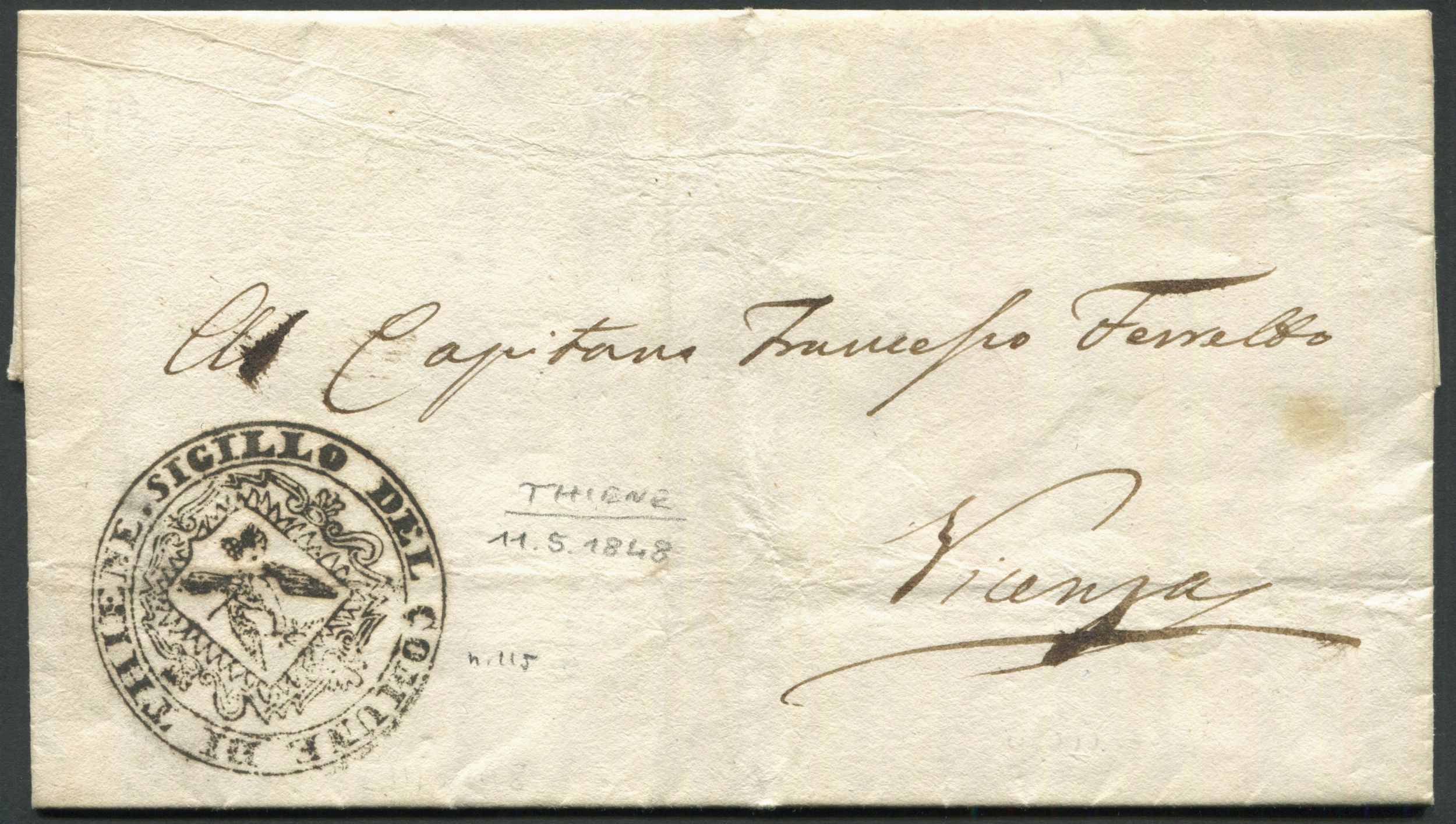 1848 - Lettera completa da Thiene per Vicenza dell'11 maggio-
