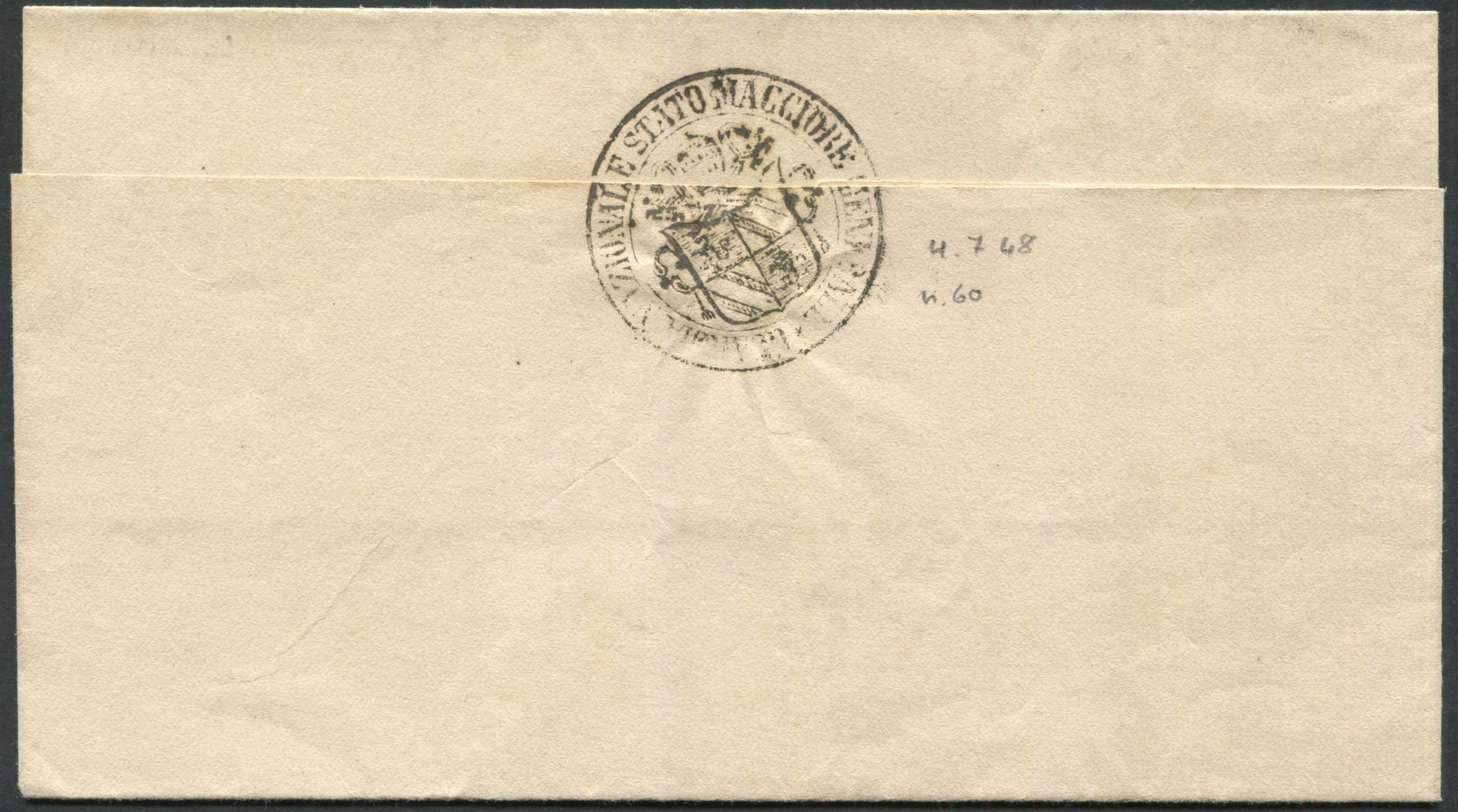 1848 - Sovracoperta da Venezia per città del 4 luglio.