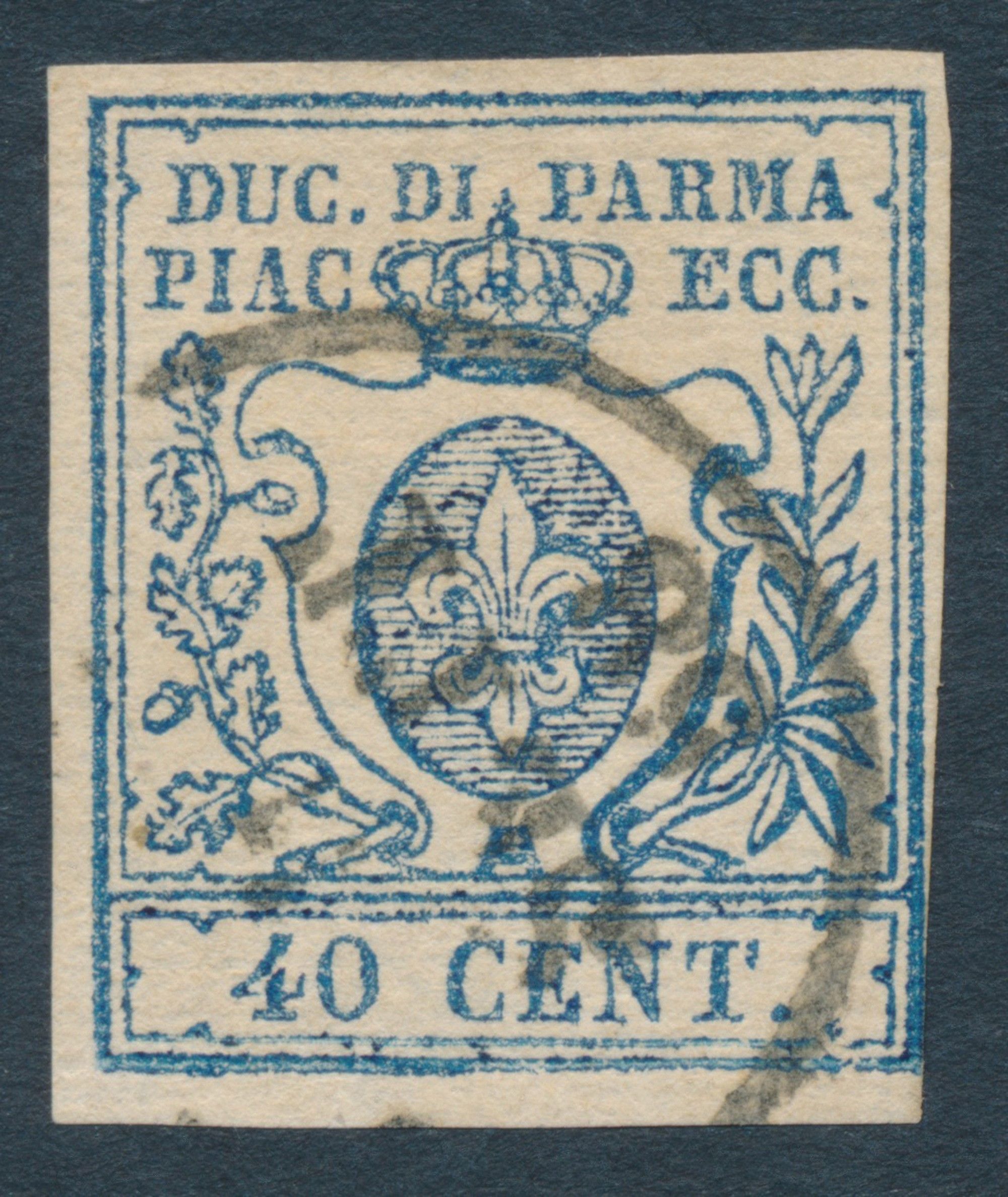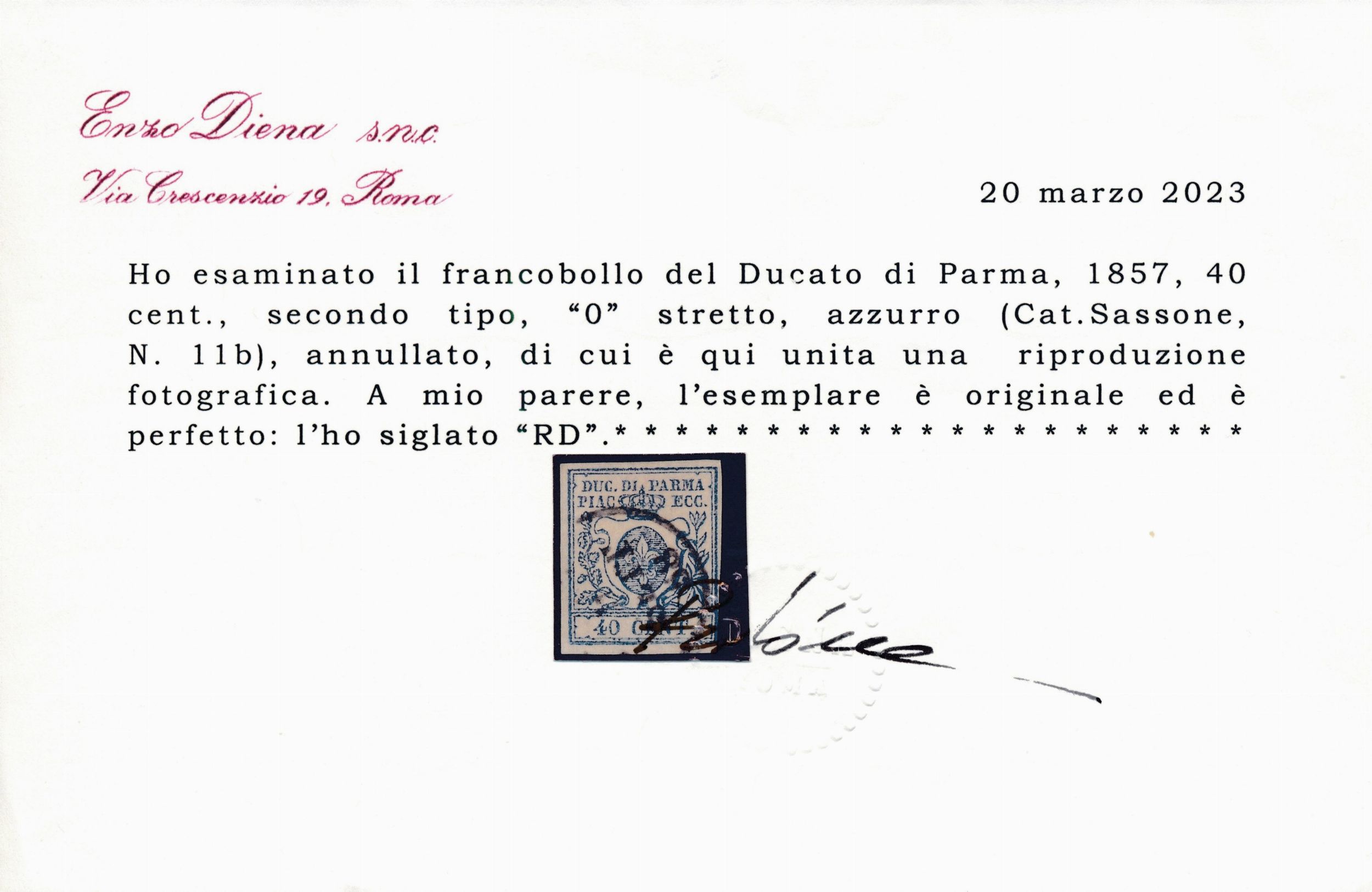 1857 Ducato di Parma 40 cent. azzurro, II tipo, 0 stretto, annullato (Sass. [..]
