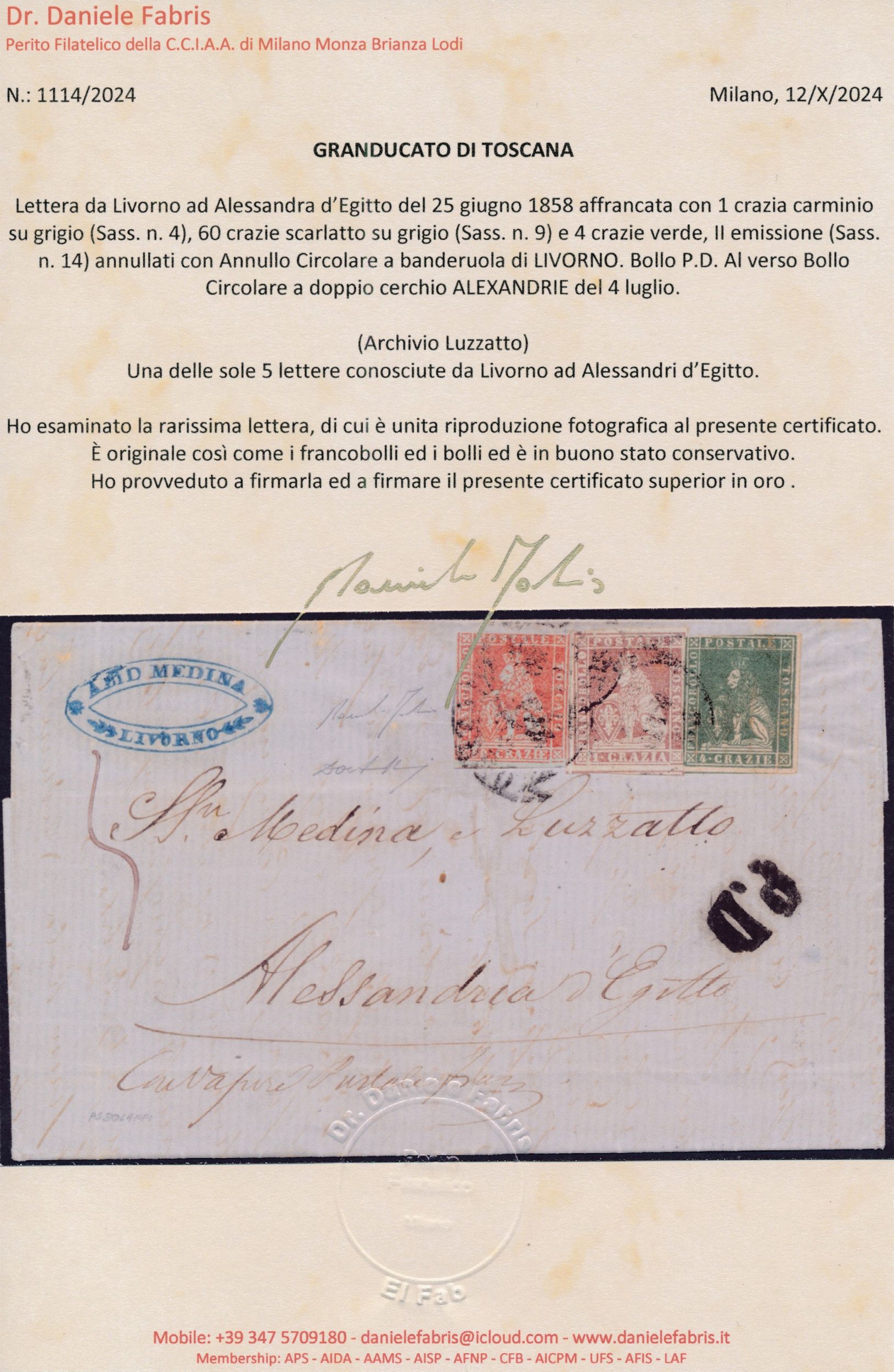 1858 - Granducato di Toscana - Posta Europea di Alessandria 60 crazie scarlatto [..]