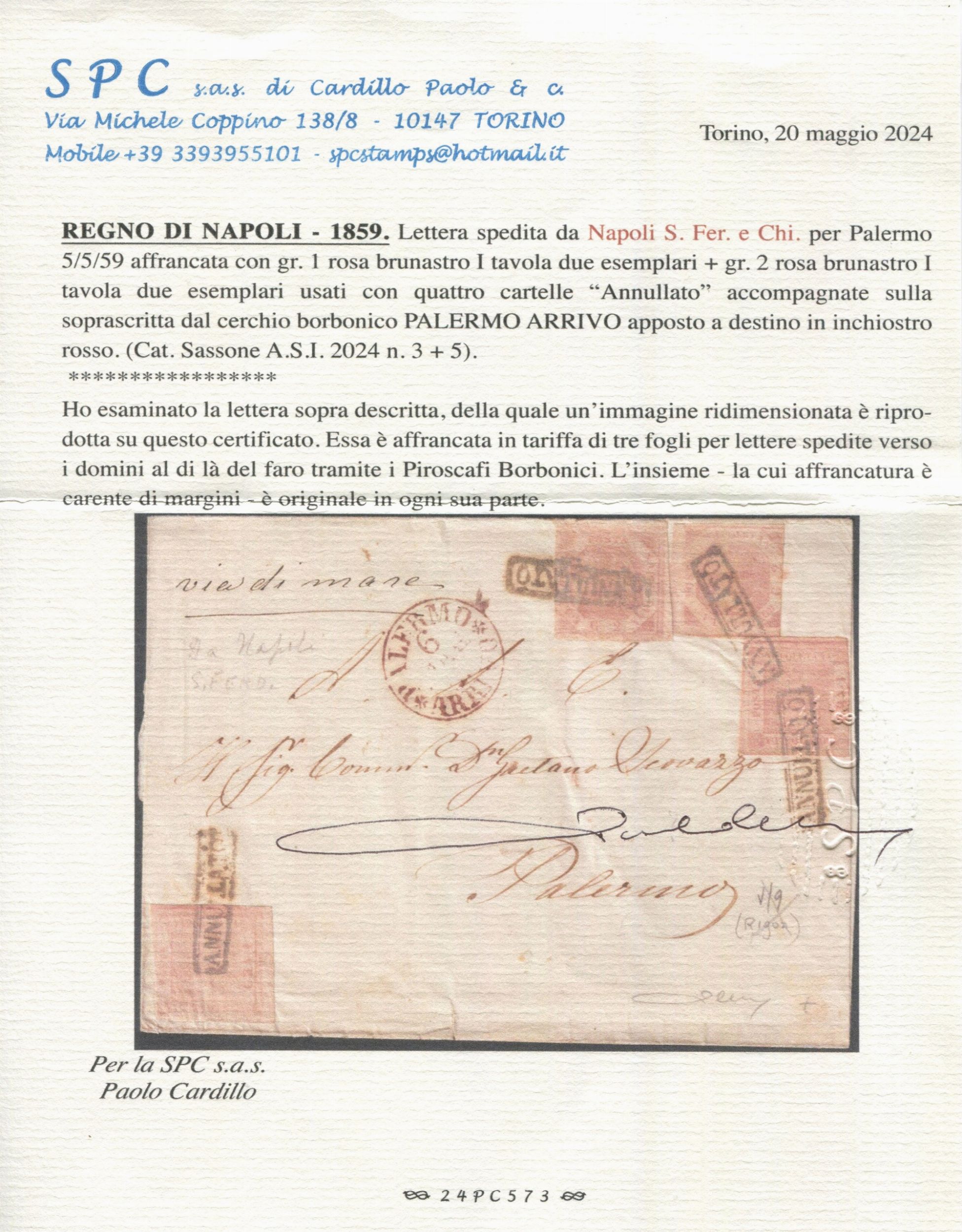 1859 - Regno delle due Sicilie, Napoli - due esemplari del 1gr. rosa chiaro I tavola [..]