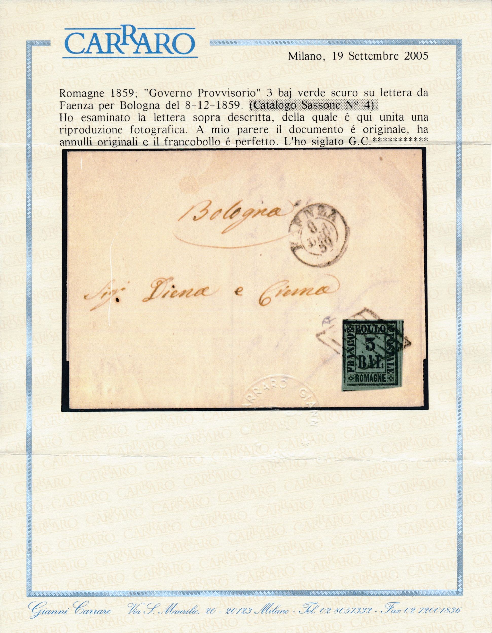 1859 - Romagne - Governo Provvisorio - Lettera da Faenza a Bologna dell’8 dicembre [..]