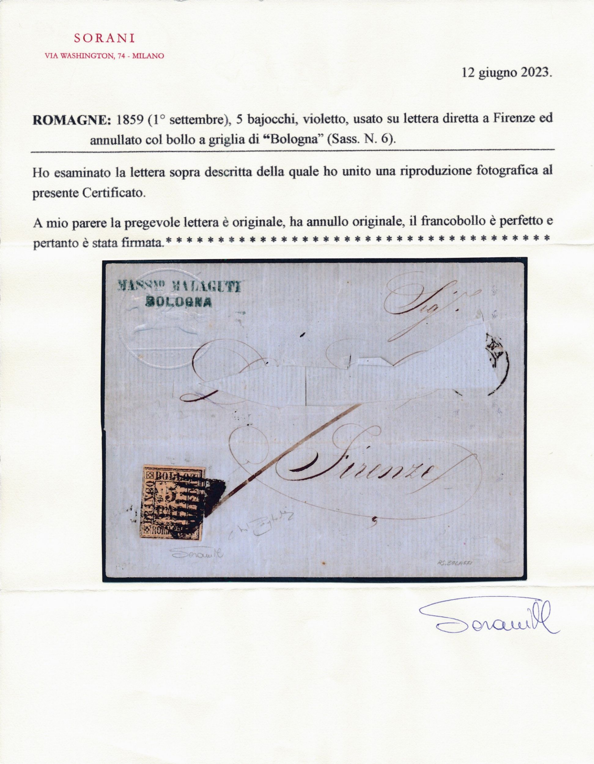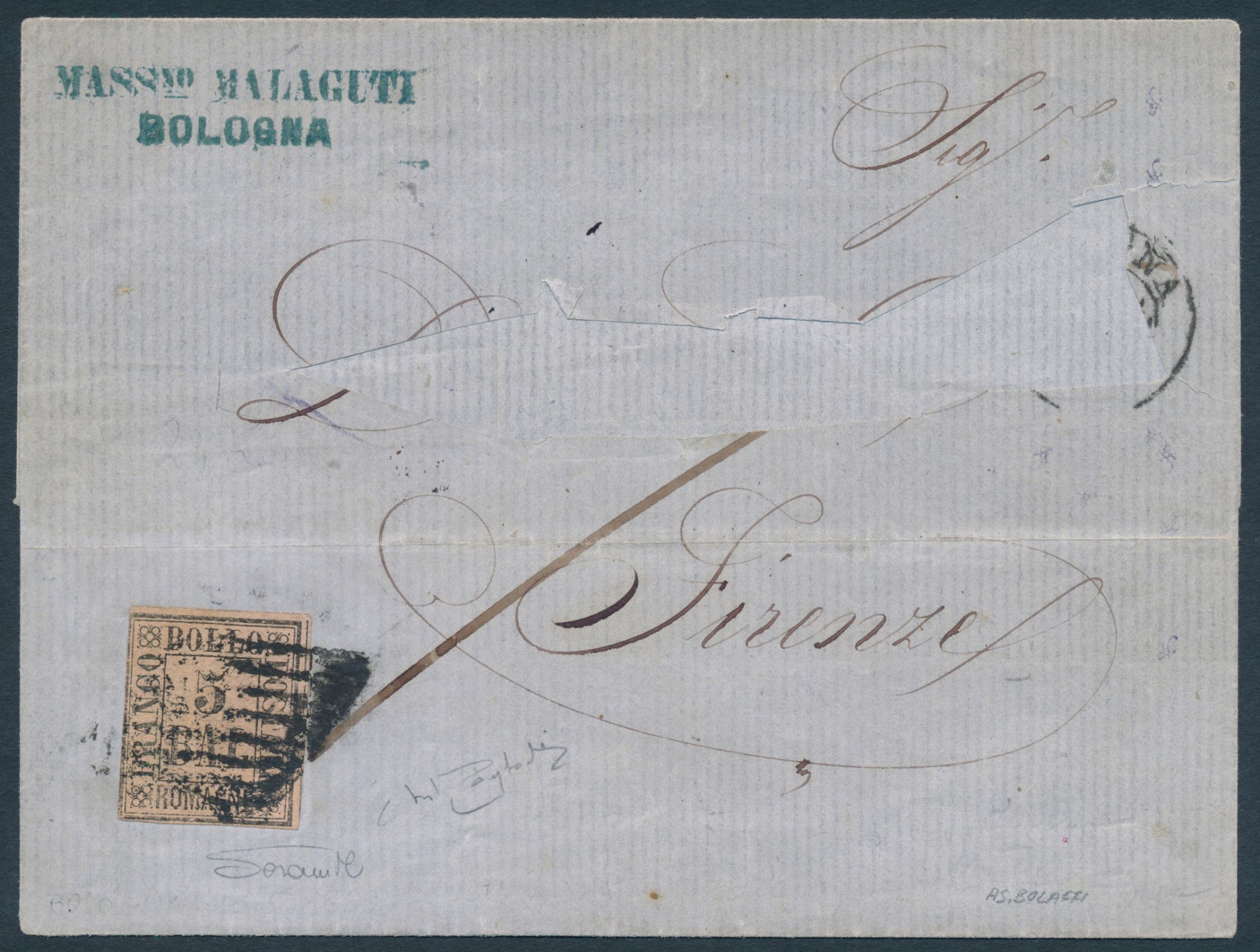 1859 Romagne Lettera da Bologna a Firenze affrancata con 5 bajocchi violetto [..]