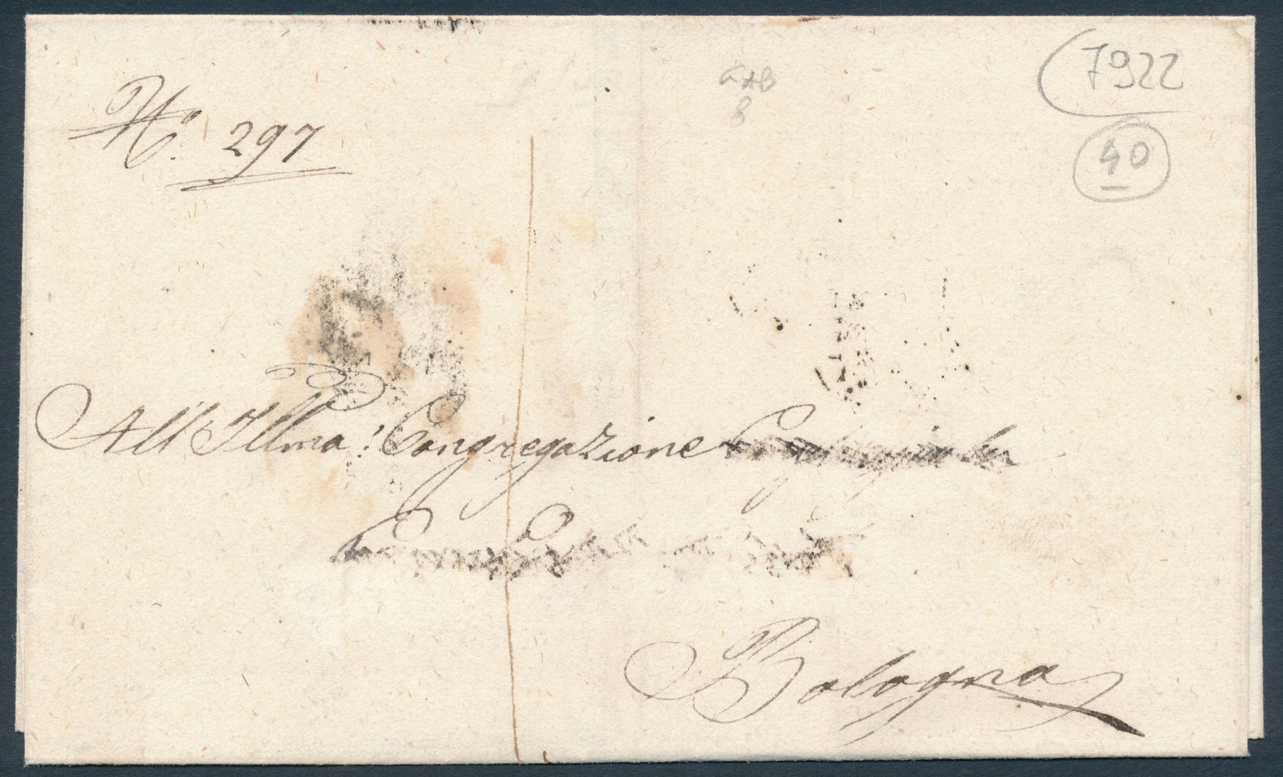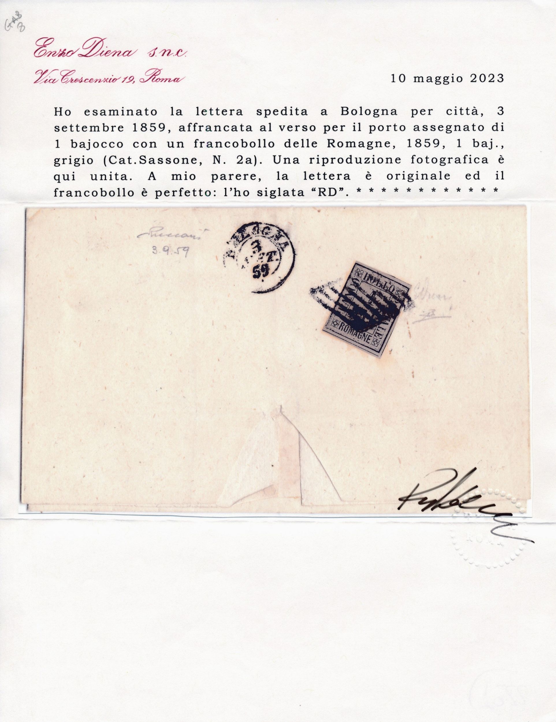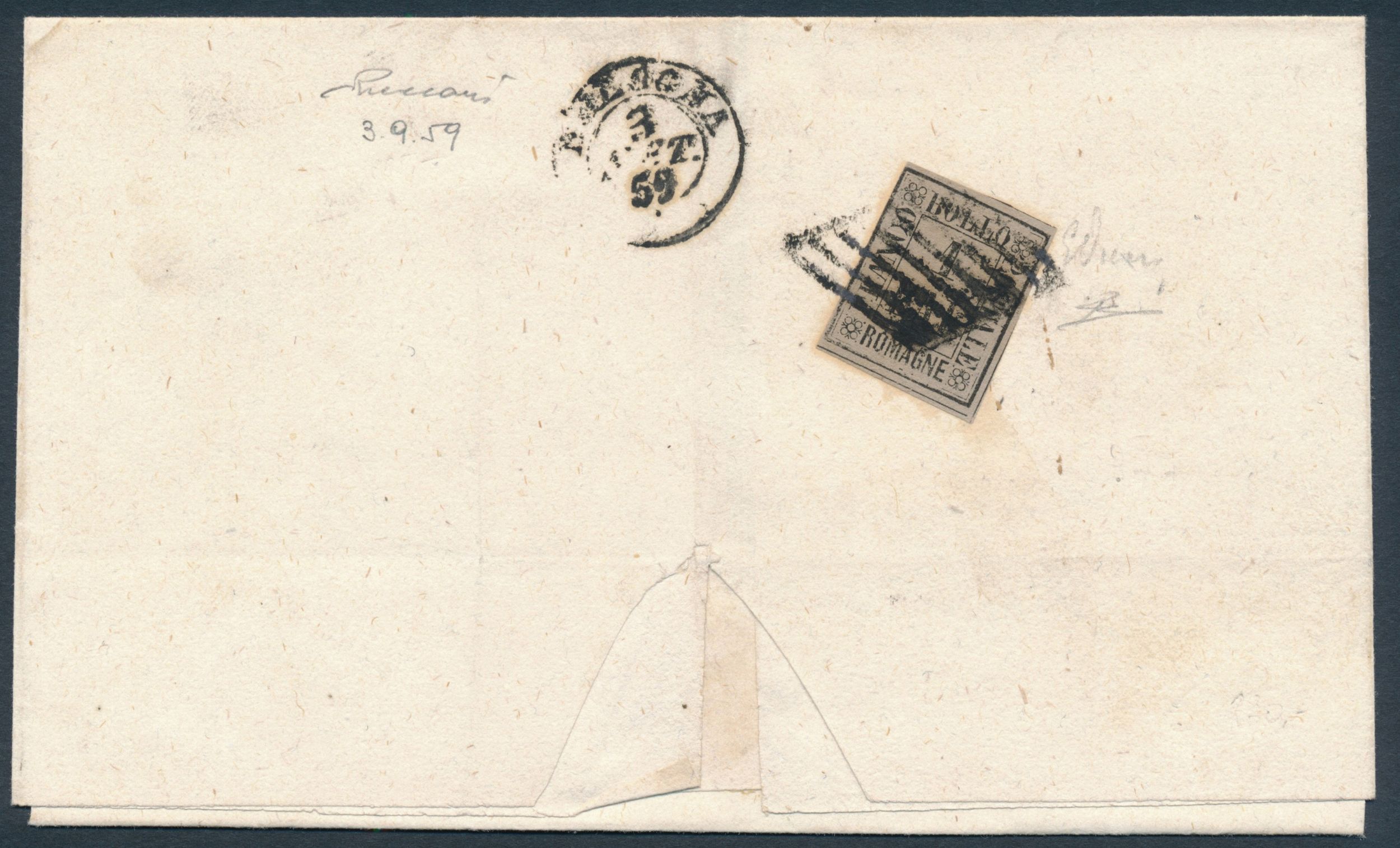 1859 – Romagne – Porto assegnato – Lettera da Bologna a città affrancata al verso [..]