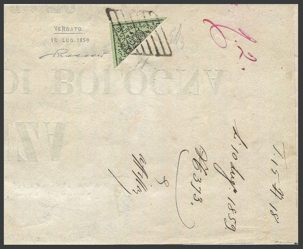 1859 - Romagne, francobolli di Pontificio usati nelle Romagne dopo la costituzione [..]