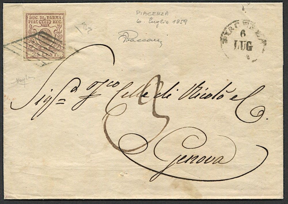 1859, Parma, Governo Provvisorio, lettera da Piacenza per Genova del 6 luglio Affrancata [..]
